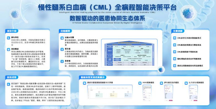 本项目面向CML的诊疗管理,基于云端人工智能(AI)设计并应用一套面向临床场景的诊疗智能体系统,涵盖医生端决策助手应用和患者端智能伴侣应用。该智能平台基于多模态临床数据结合自适应算法驱动,旨在实现CML全病程诊疗精准化,赋能患者参与决策,以期提高医疗工作效率、改善患者预后质量。最终实现以数智技术提升慢病管理综合体验,构建慢病管理新范式。