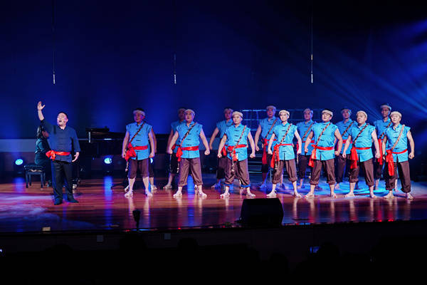 整场演出以“扬帆起航”开篇,《朝天门起航》以雄浑领唱与磅礴合唱再现船工众志成城的集体意志;《十二月歌》的旋律随四季流转,唱出劳动与自然的和谐共生。在“博浪逐梦”篇章中,国家级非遗传承人曹光裕领唱的《纤痕落魂腔》,以其苍劲古朴的嗓音,将纤夫的生命印记深深烙入听众心间。